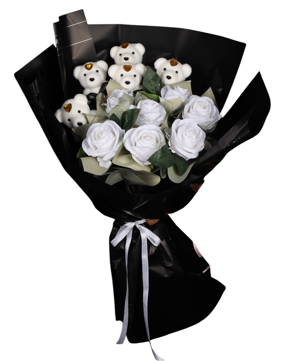 Beyaz Güller Ayıcıklar Işıklı Buket