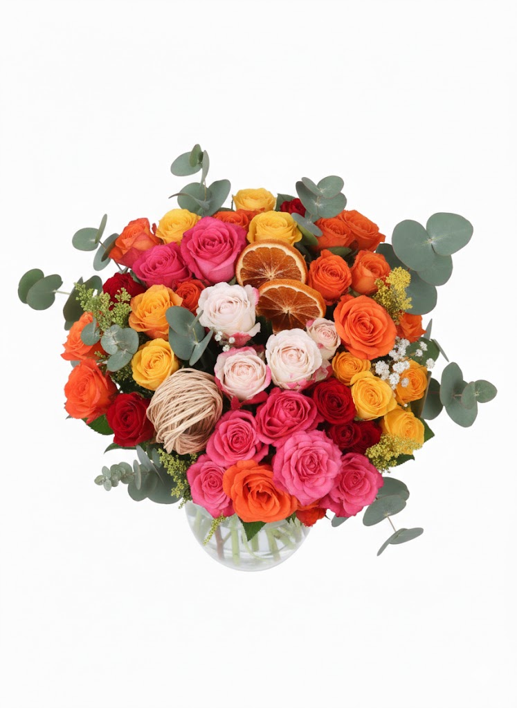 Çiçek Türü: Canlı pembe, turuncu, sarı ve kırmızı tonlarında seçme güller.