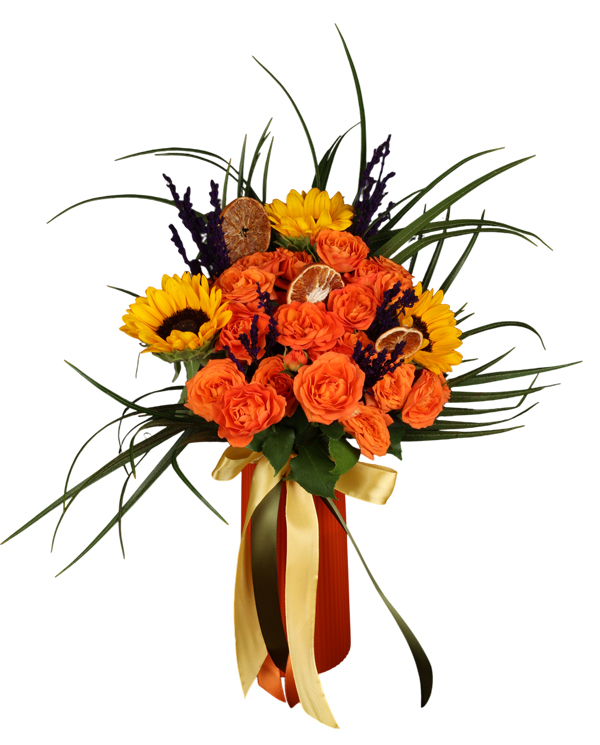 Vazoda Turuncu Çardak Güller ve Ayçiçekleri